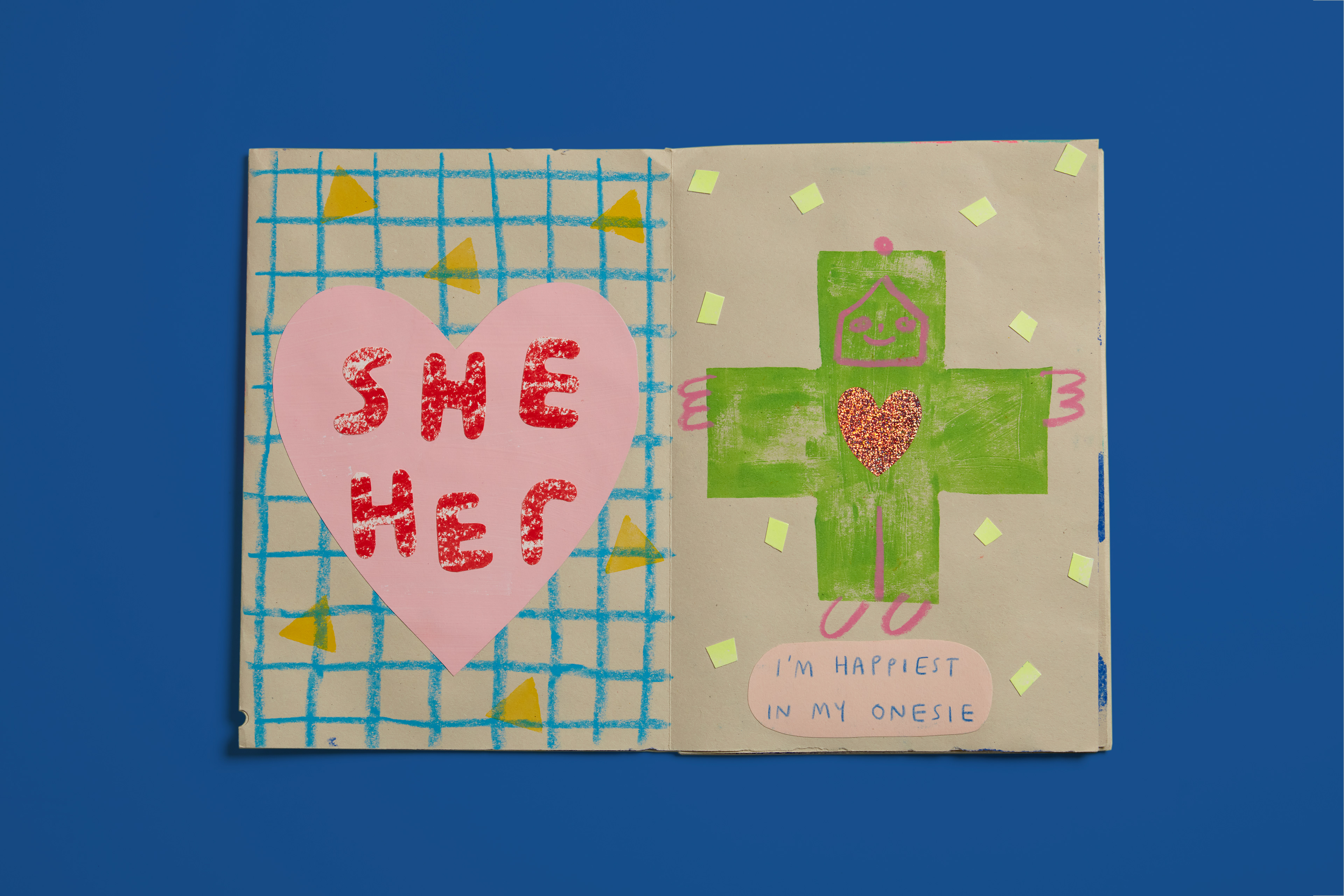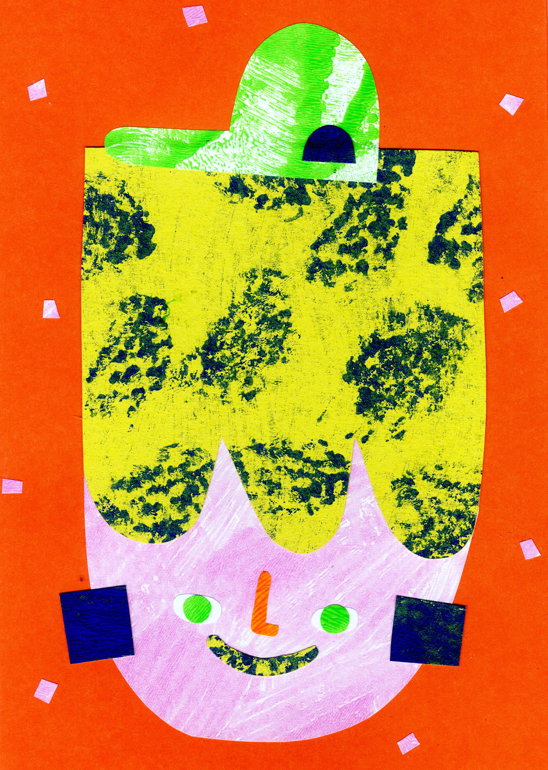 A selection of my paper based work. I mostly work in collage using hand printed paper with colouring pencil or crayon detail (and of course fluffy pom poms)!
